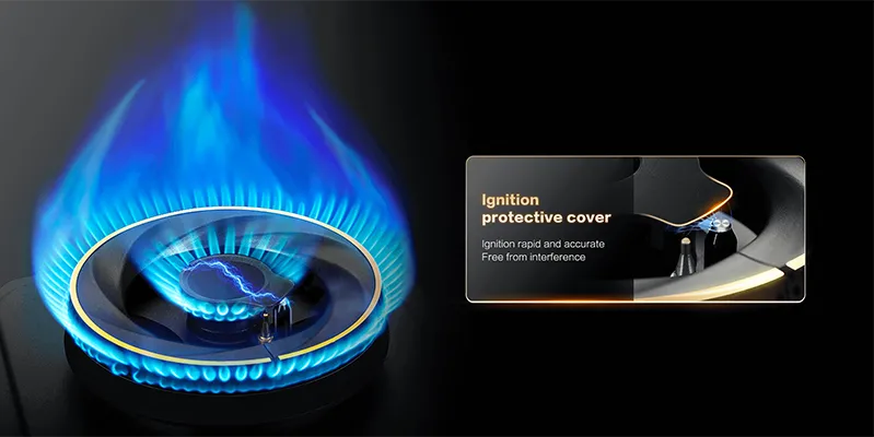 Tecnología de pulso automático combinada con una fuerte cobertura de incendio de cobre conductor. No hay necesidad de prensar y esperar largas, mejorar la eficiencia y hacer que la cocina sea más agradable.
