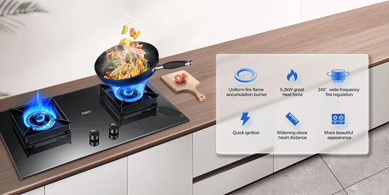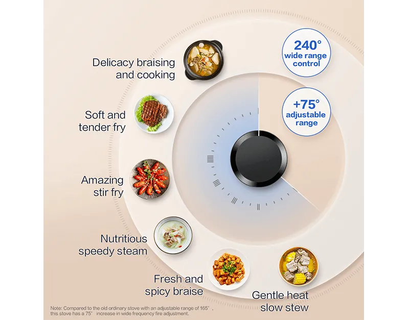 Regulación de incendios de frecuencia de 240 ° de ancho. Calor suave para cocinar frescura y buen calor para cocinar especias
