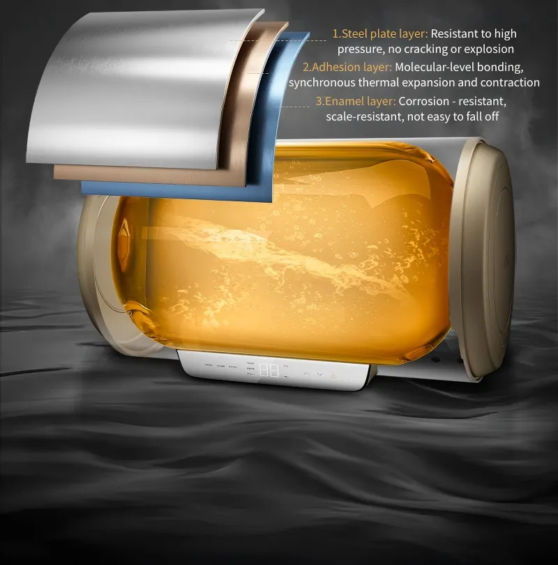 El tanque interno del esmalte funciona bien, resiste la presión, evita la corrosión y reduce la escala
