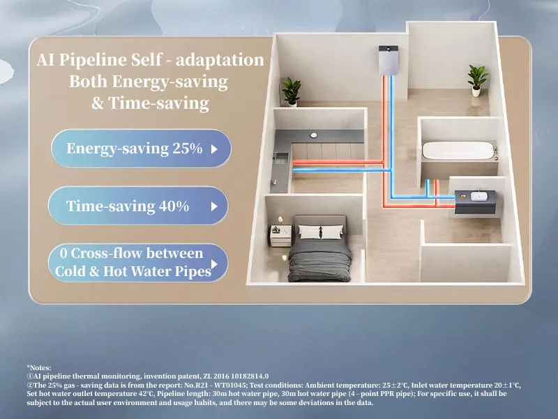 Disfrute del agua caliente instantánea con la función de agua de agua cero (modos de uso único, activado con tacto o programado) y adaptación de tubería de IA que permite el precalentamiento de media tubería para ahorrar tiempo y gas. El doble aumento de presión de gas de agua garantiza un flujo fuerte con un bloqueo de temperatura de un toque, mientras que la tecnología de combustión múltiple (ignición de fluctuación cero, control de micro-llama y detección de temperatura inteligente) ofrece una comodidad ininterrumpida.
