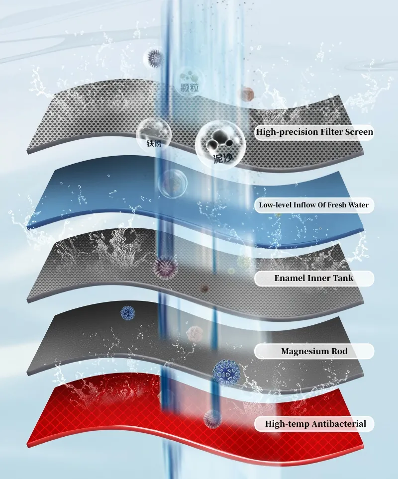 El calentador de agua eléctrico D1C1, con su cuerpo compacto, calefacción rápida de 2200 W, salvaguardas de seguridad de capas múltiples y purificación de agua de cinco etapas, ofrece un espacio: ahorro, una solución de baño eficiente y segura. Respaldado por una garantía de 6 años, garantiza una experiencia cómoda y de agua caliente gratuita.