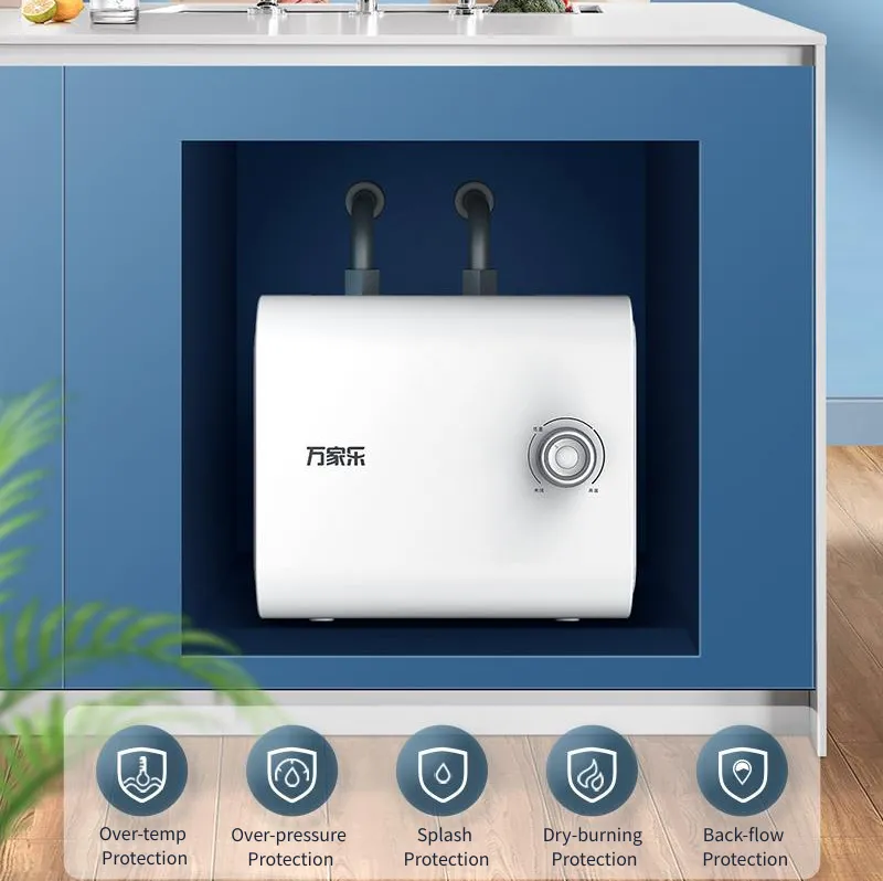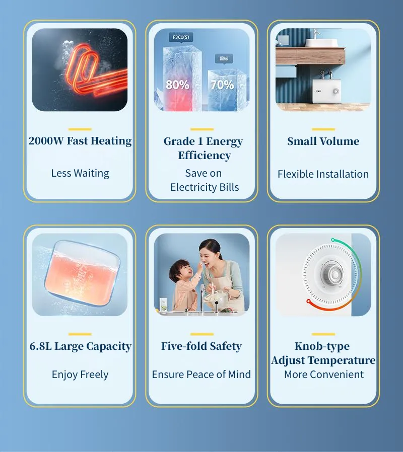 Calentador de agua eléctrico D1C1: calefacción rápida de 2000W con eficiencia energética de primer nivel. Cuenta con 5 protecciones de seguridad y 4 capas de purificación para agua caliente sin preocupaciones. Diseño compacto, control mecánico fácil y tanque de esmalte duradero.