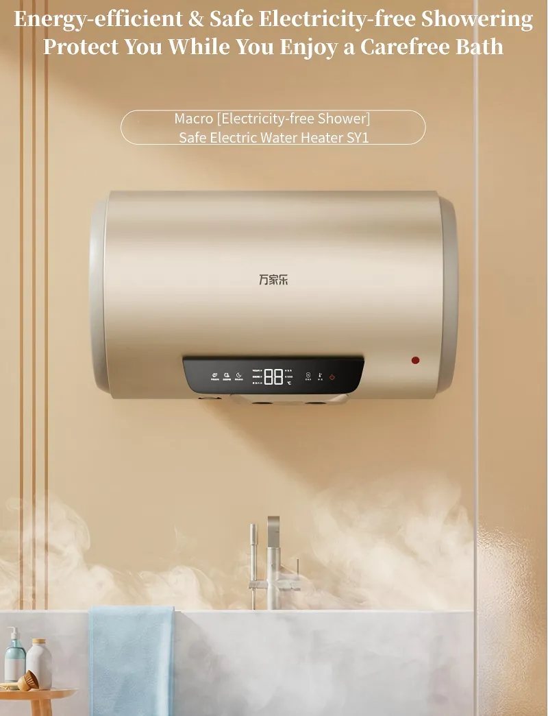 Actualice su experiencia de baño con el calentador de agua eléctrico SY1, combinando tecnología avanzada sin choque 2.0 (alerta de falla a tierra, encendido automático y protección de doble fuga) para la seguridad final. Impulsado por una calentamiento rápido de 3000W, ofrece agua caliente instantánea al tiempo que alcanza la eficiencia energética de grado 2, ahorrando costos sin comprometer el rendimiento.