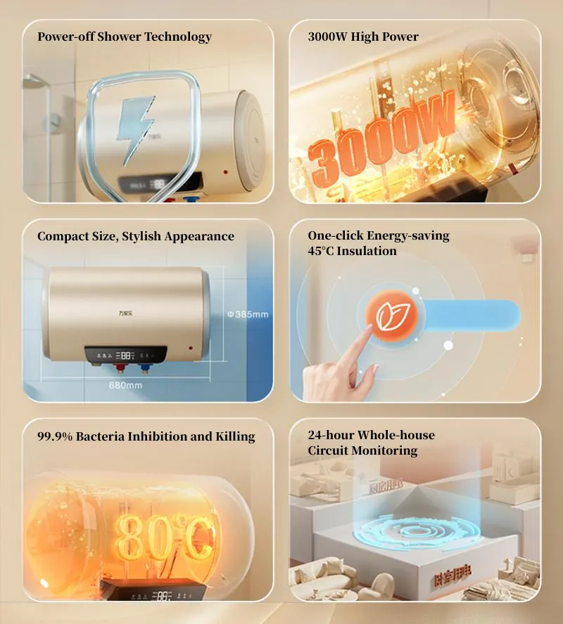 Para una vida de ritmo rápido, elija la opción de calentamiento rápido de 3000W. Menos espera, más cuidado.