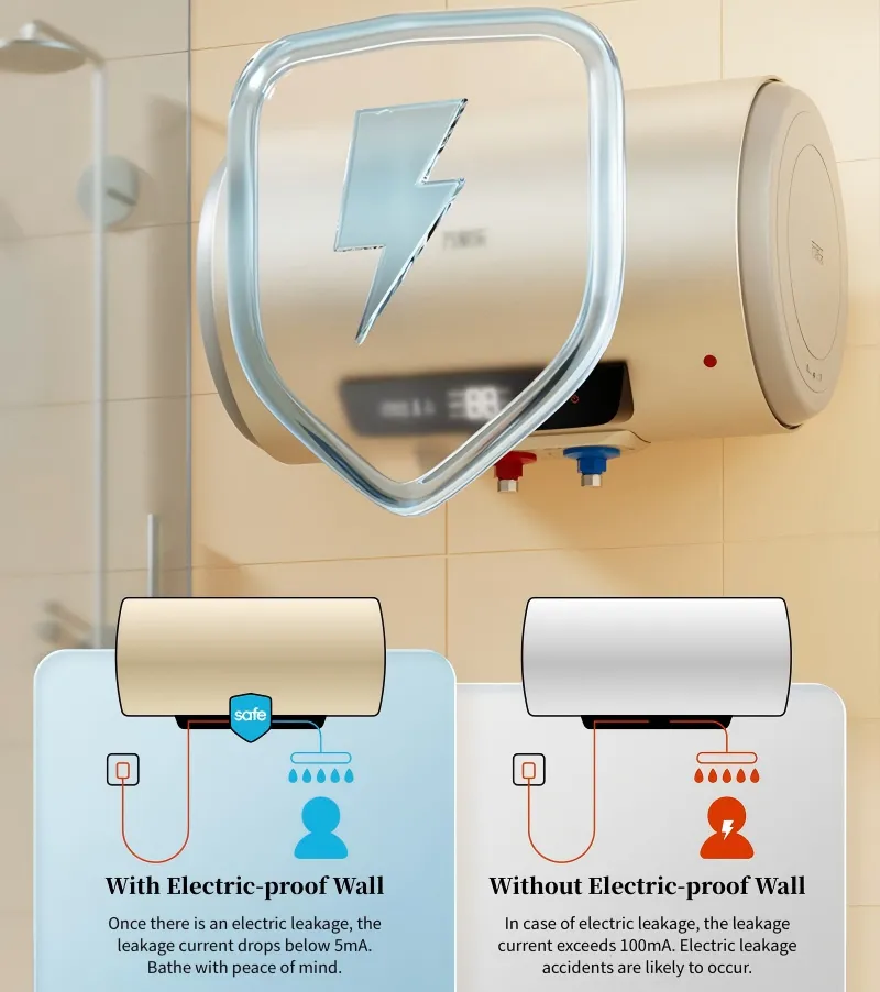 El calentador de agua eléctrico SY1 cuenta con tecnología 2.0 sin choque (protección de fugas + impotente cuando está en uso), calefacción rápida de 3000W, 8 protecciones de seguridad y 6 capas de purificación. Ahorro de energía, antibacteriano (99.99%) y precalentamiento inteligente. Diseño elegante con durabilidad de 8 años. ¡Baño seguro, eficiente y sin preocupaciones!
