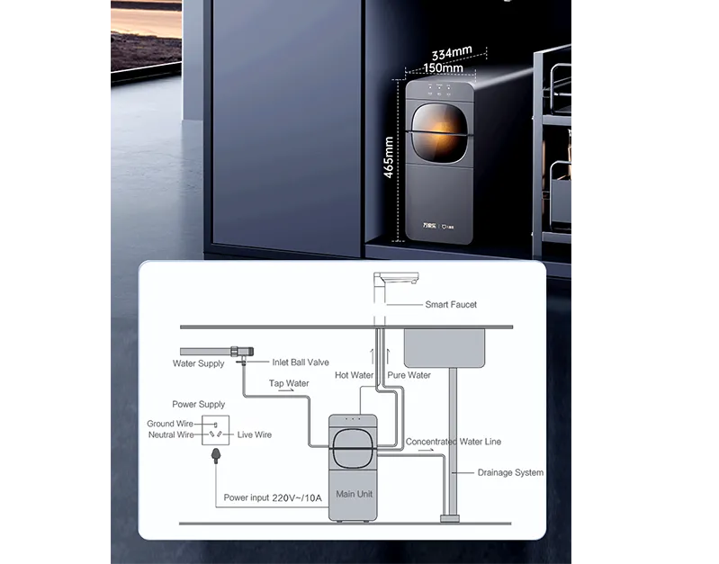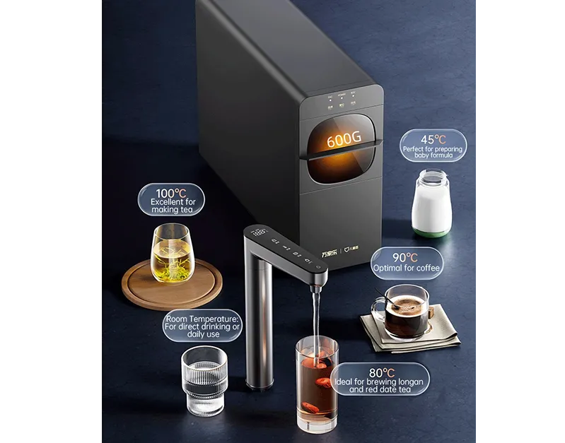 Con cinco configuraciones de temperatura de AttetOble, este sistema ofrece dispensación de agua caliente precisa y eficiente para múltiples escenarios, las características incluyen visualización de temperatura del tiempo REDL, recordatorios de reemplazo de filtros y un bloqueo de seguridad infantil para mayor comodidad y seguridad.
