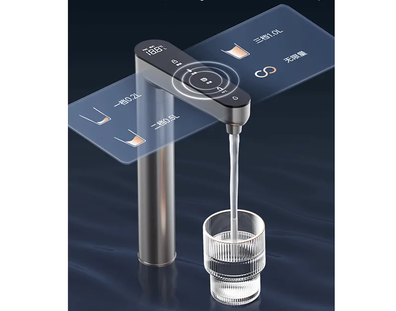 Equipado con un grifo inteligente, ofrece agua pura y agua hervida a varias temperaturas: temperatura ambiente, 45 ° C, 80 ° C, 90 ° C y 100 ° C. Con una potencia nominal de 2200W, ofrece un rendimiento eficiente mientras se mantiene un caudal de agua de 1.57L/min. El sistema opera dentro de un rango de presión de entrada de agua de 0.1 ~ 0.4MPa y proporciona opciones flexibles de rendimiento de agua: 0.2L, 0.5L, 1.0L o flujo continuo.
