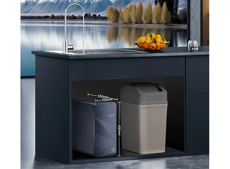 El purificador de agua subyacente, con dimensiones de 450x330x150 mm, ahorra espacio.