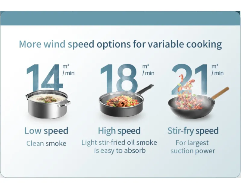 Un modo de salteado clave, el volumen de aire de la máquina de humo se incrementa al instante, fácil de chupar el humo del aceite.