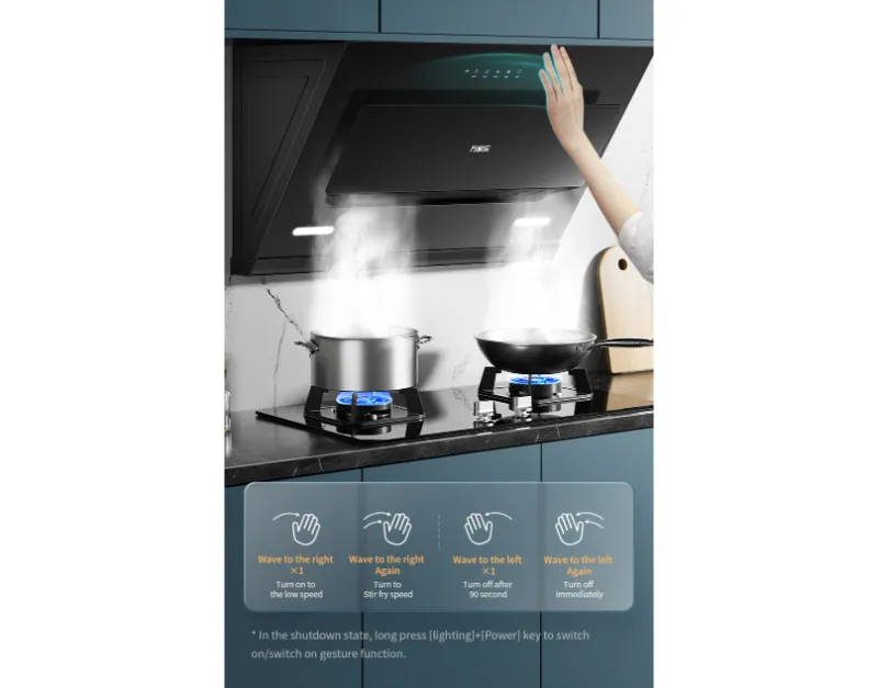 Equipado con sensor inteligente para el movimiento de la mano, una onda simple para controlar el capó, traer una cocción limpia y feliz.