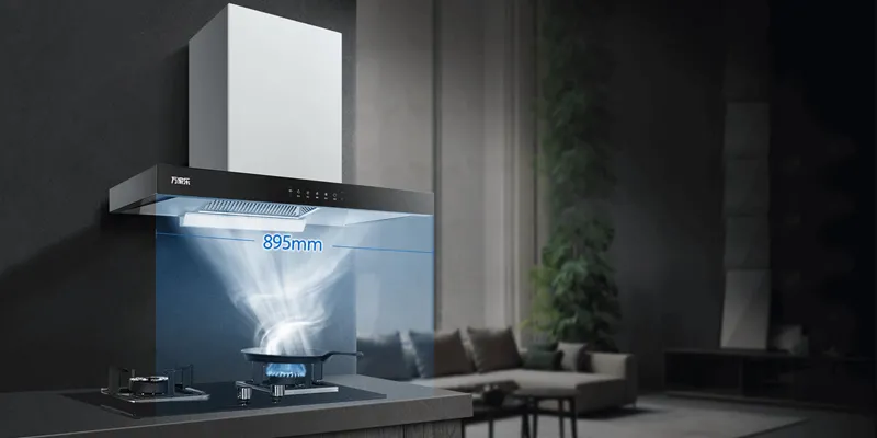 Con la estructura de estilo europeo en un ancho de 895 mm, el puerto de succión de humo del centro cóncavo profundiza la cámara de humo para