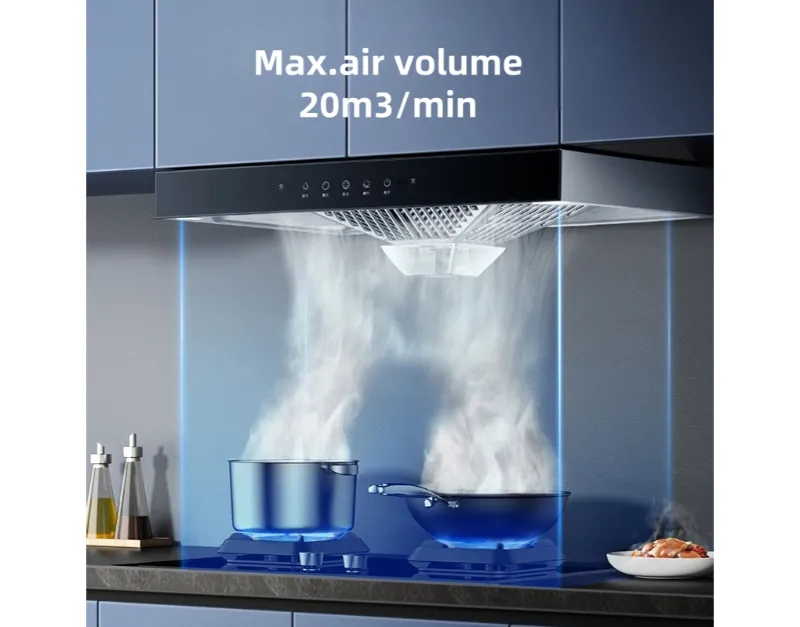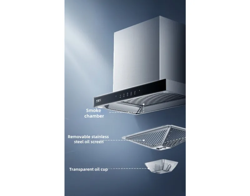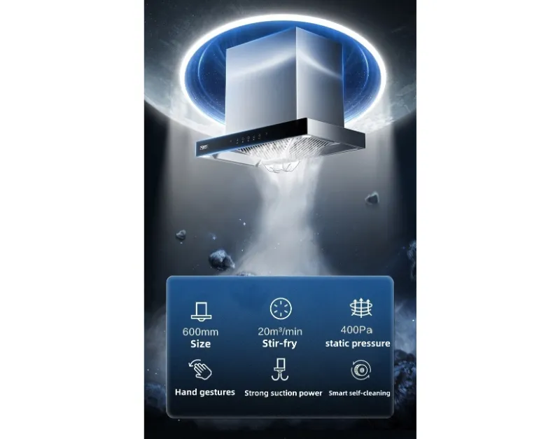 Esta campana de rango premium ofrece un rendimiento excepcional con un flujo de aire máximo de 1200m³/h, eliminando eficientemente el humo y los olores mientras opera a un tranquilo nivel de ruido de 56 dB. Hecho a mano de acero inoxidable duradero, combina una construcción robusta con una estética elegante para cocinas modernas.